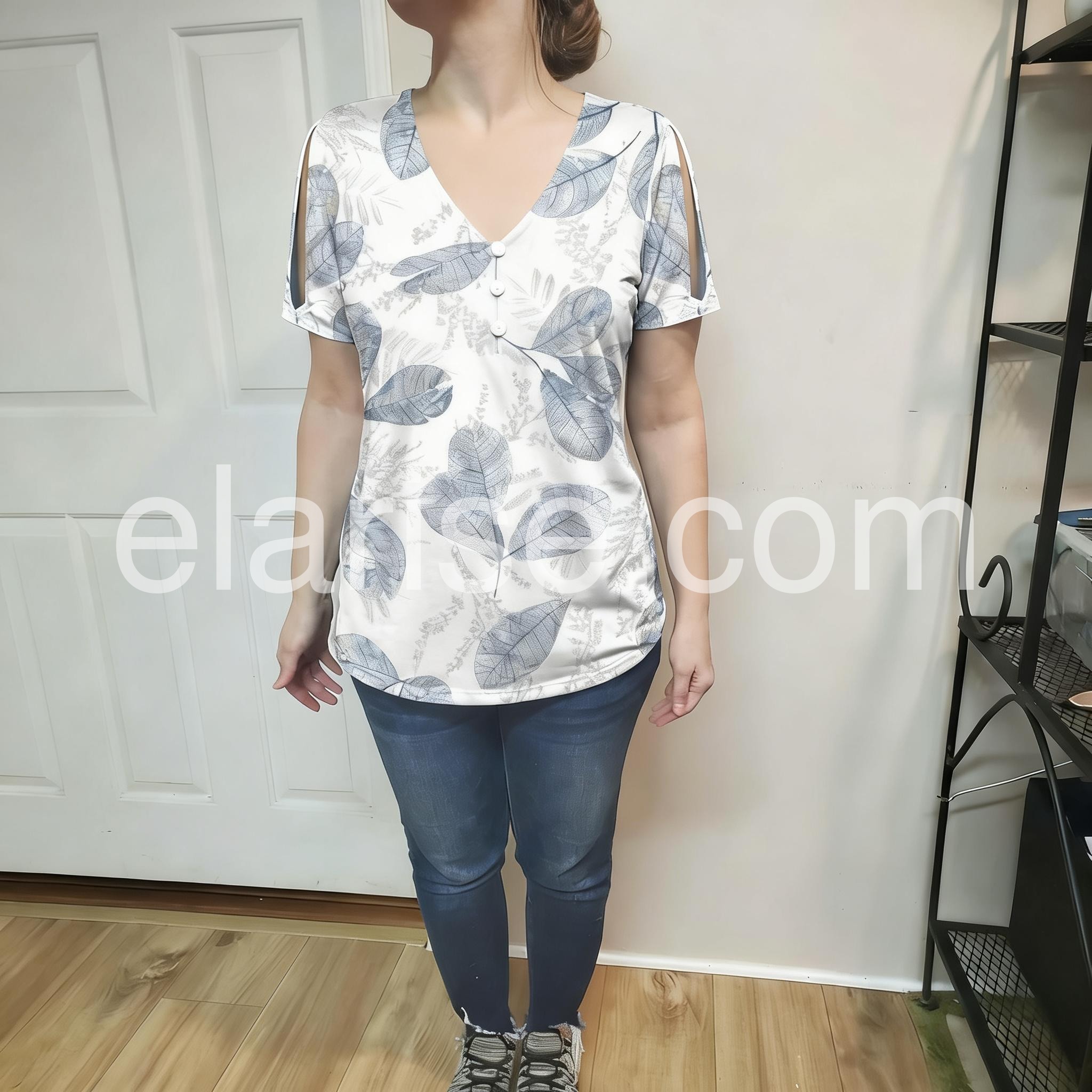 This is a lovely tee shirt. It is very stylish and classy. You could easily dress this tee shirt up by pairing it with a maxi skirt. Of course it’s also casual and looks amazing paired with jeans. The colors also complement jeans very well. The length is perfect. This would be very easy to tuck in to a skirt or jeans die a different look. It offers plenty of coverage. I got a medium and it’s true to size. I could have sized down for a tighter fit, but I like how the medium is more roomy. The material is high quality, light, thin, and very soft. It feels very comfortable and soft on my skin.