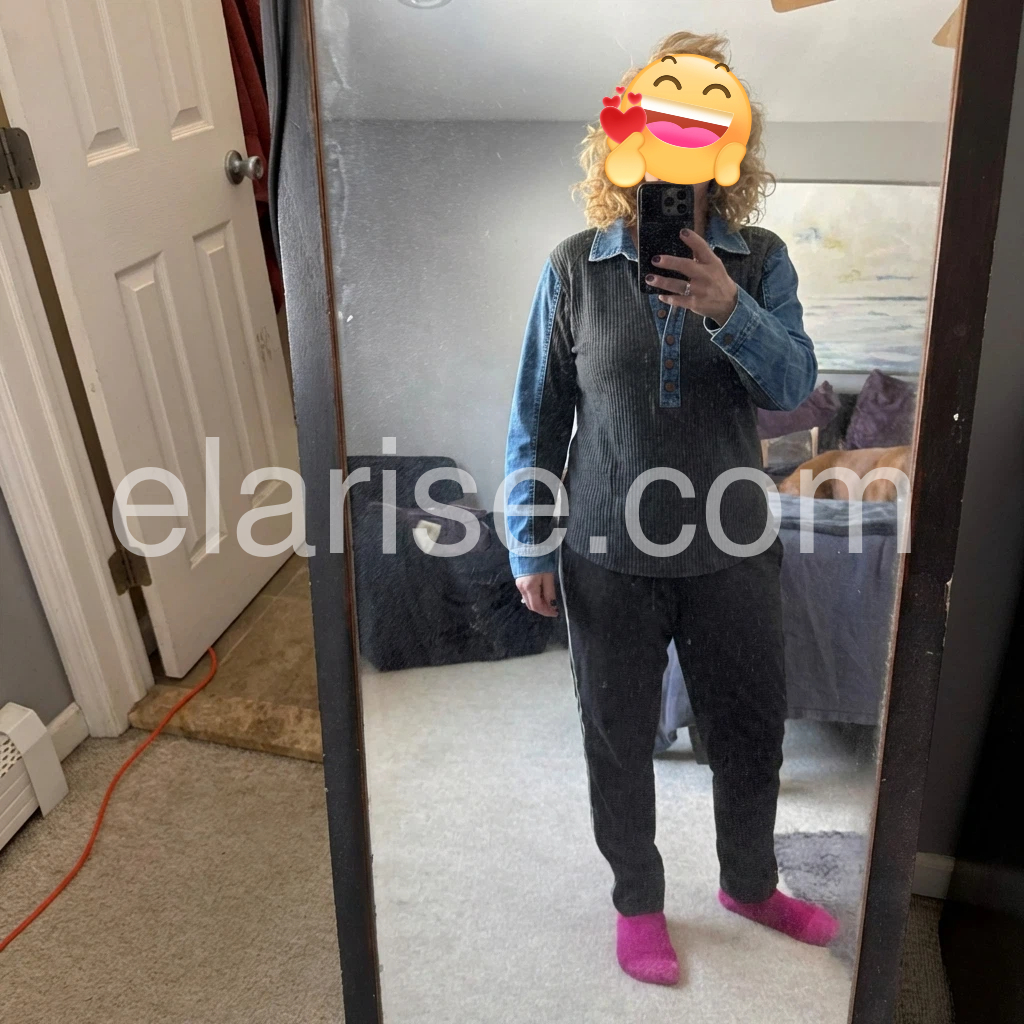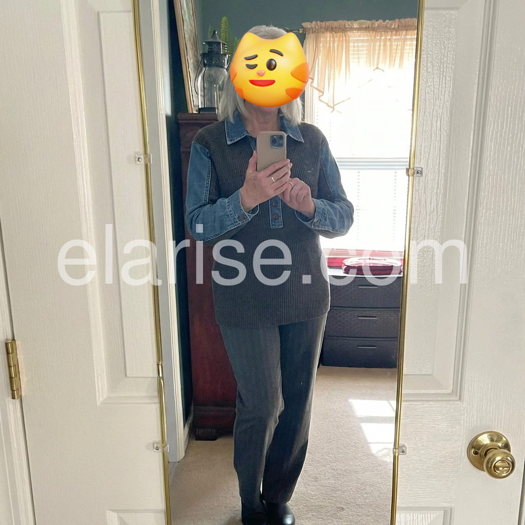 I’m obsessed with this mixed-media top! The ribbed knit is so cozy and stretchy, while the denim sleeves and collar give it a rugged, trendy edge. The curved hem is a nice touch that makes it look more polished, and the button placket is easy to adjust for different necklines. It’s versatile enough to wear with jeans for a casual look or with a skirt for a more put-together outfit. The quality is way better than I expected, and it washes well without shrinking.