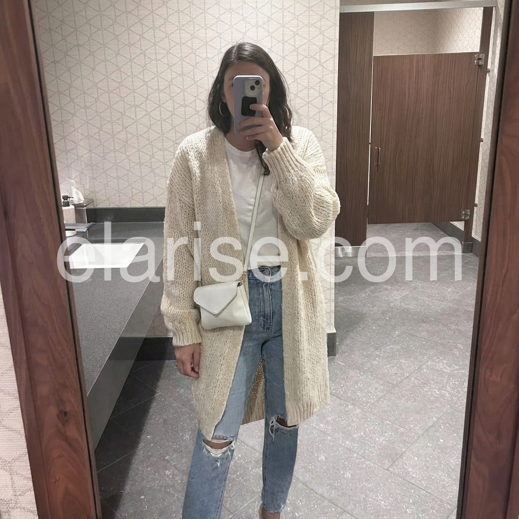 Ivory Plain Collarless Long Sleeve Cardigan