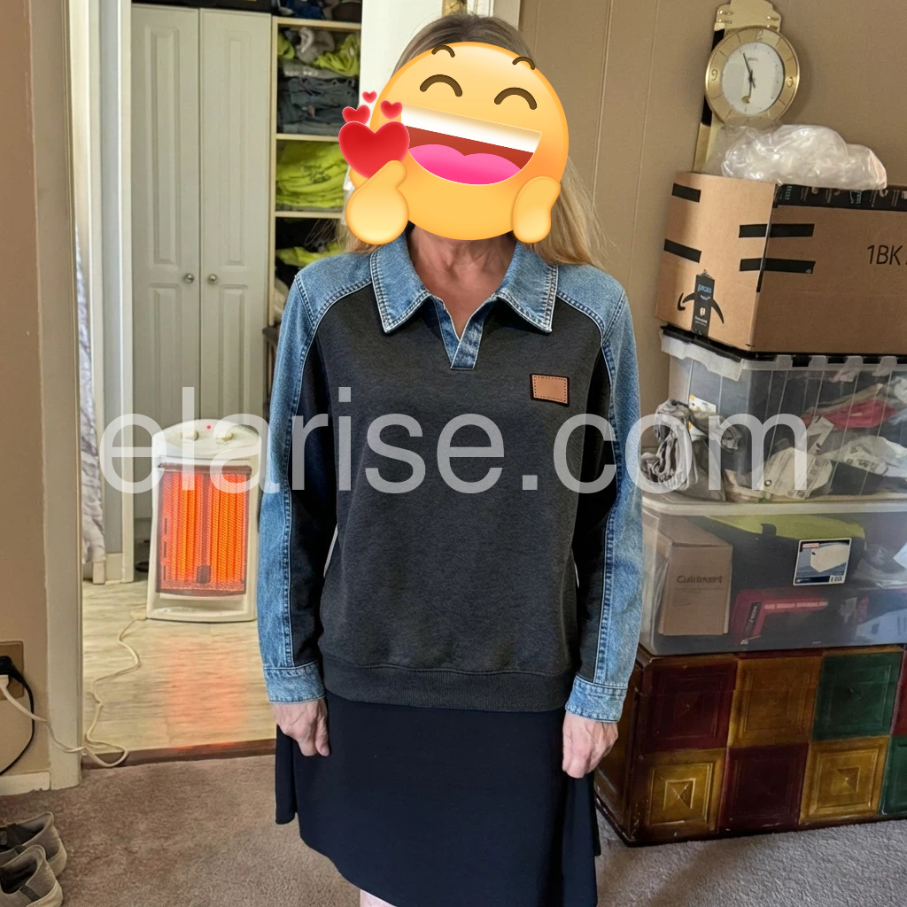 Elevate your denim collection with this striking color block long sleeve top. Crafted from quality denim, the contrasting panel design creates visual interest and modern appeal. The structured long sleeves offer versatility for layering or standalone wear, making it an essential piece for transitional seasons. Perfect for those who appreciate thoughtful design details and seek a standout addition to their everyday wardrobe. Style it with classic jeans for effortless sophistication or pair with neutral bottoms to let the color blocking take center stage.