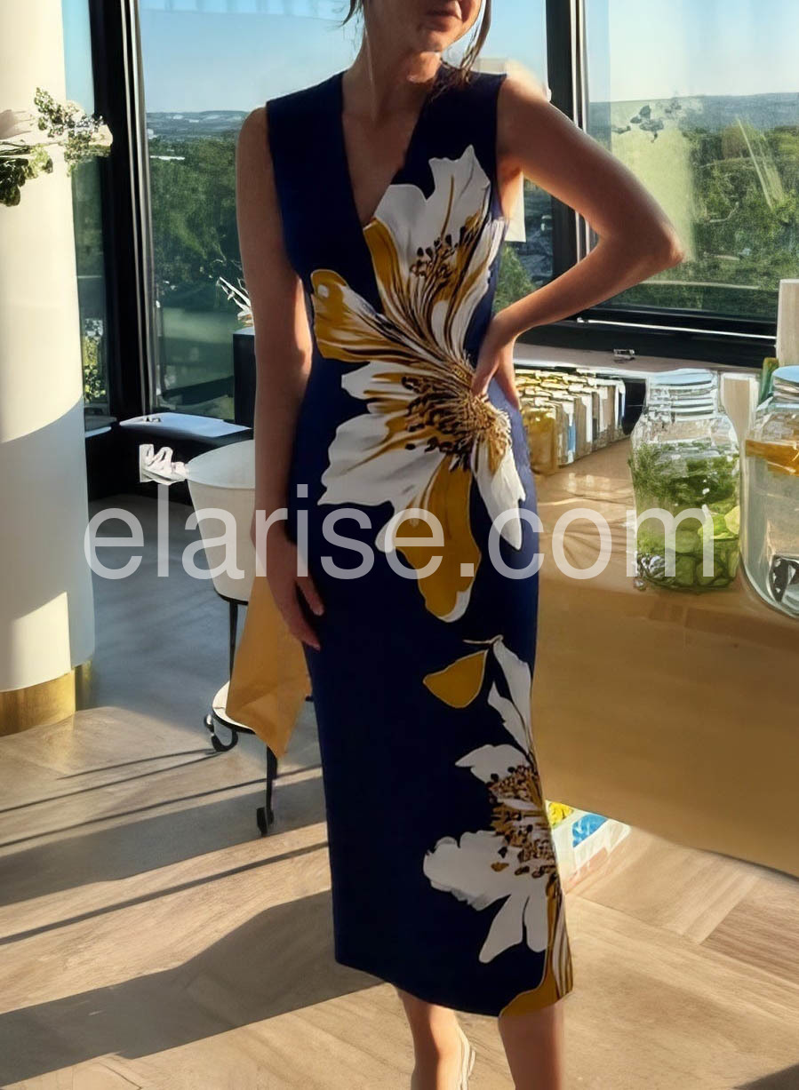 Picture yourself gliding into a garden soirée, turning heads with effortless grace. This sleeveless maxi dress features an enchanting floral print that whispers sophistication, anchored by a refined V-neckline that flatters every frame. The A-line silhouette flows like liquid poetry, while the luxurious rayon-elastane blend—60% rayon, 40% elastane—drapes with breathable elegance against your skin. From sunset weddings to upscale brunches, this dress adapts to your most memorable moments. The sleeveless cut offers freedom of movement, while the maxi length commands presence. Machine washable for effortless care, it's the investment piece that earns its place in your wardrobe season after season. Discover your signature look. Choose your size and step into timeless elegance.
