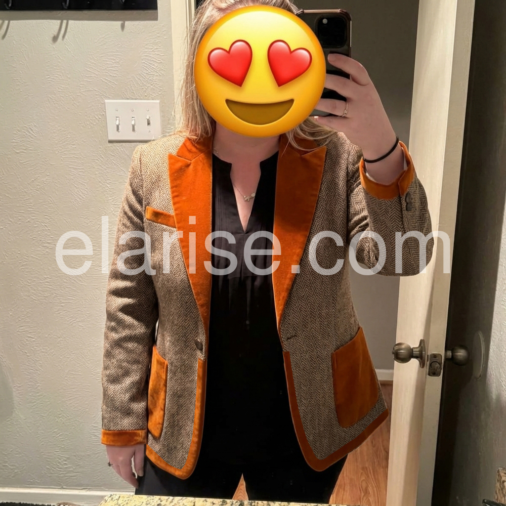 Elevate your wardrobe with this sophisticated brown herringbone velvet blazer, a timeless piece that seamlessly bridges vintage charm and contemporary style. The luxurious velvet fabric showcases a classic herringbone weave, delivering both visual depth and tactile elegance. Featuring a refined single-button closure, this blazer offers a streamlined silhouette that flatters various body types while maintaining impeccable structure. The rich brown tone pairs effortlessly with neutrals or bold accents, making it an indispensable layering piece for professional settings, evening occasions, or elevated casual wear. Perfect for those who appreciate quality craftsmanship and enduring design.