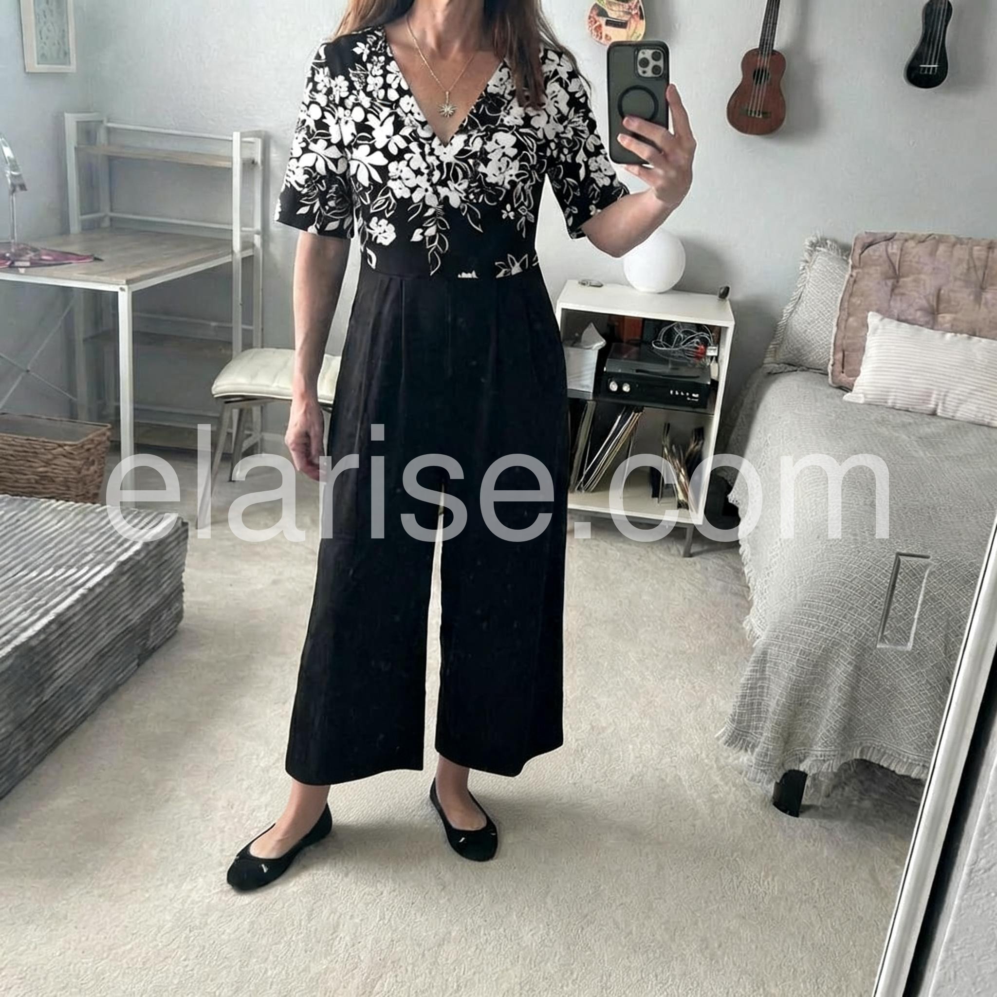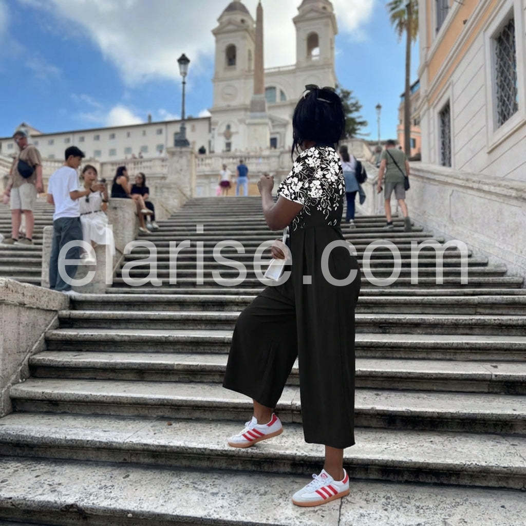 Expertly designed with a trendy black floral print, this jumpsuit is sure to elevate your style. Featuring half sleeves and a comfortable fit, it's perfect for any occasion. Made with high-quality materials, this jumpsuit is a must-have for any fashion-forward individual.