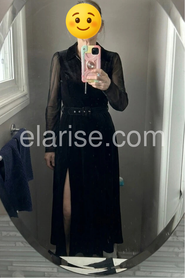 Black Velvet Zip Front Long Sleeve Maxi Dress