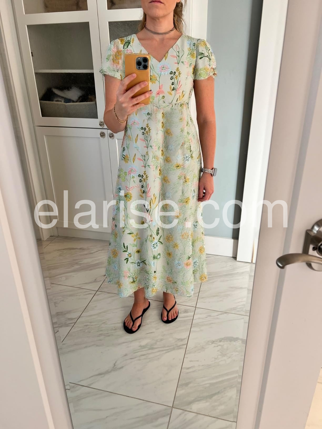 Distinctive V-Neck Short Sleeve Maxi Dress