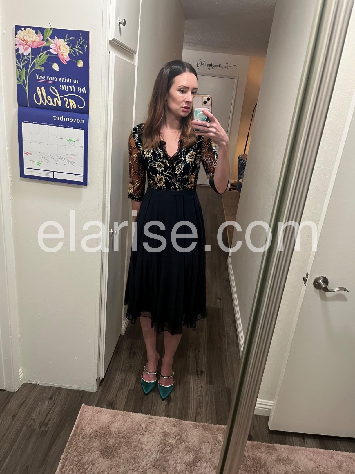 This stylish midi dress features a flattering V-neck design and elegant 3/4 sleeves, making it perfect for any occasion. With its versatile and timeless style, it offers a comfortable and chic look that can be dressed up or down. Made from high-quality materials, this dress is a must-have for any fashion-forward wardrobe.